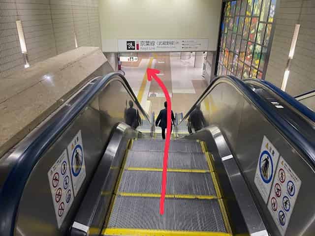 京葉線・武蔵野線ホームの6号車乗車口のある階段を上ります。