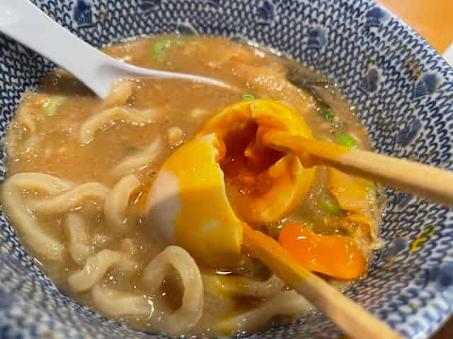 煮卵は黄身だけがとろとろでおいしかったです。追加注文しておけばよかった!