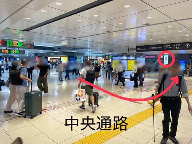 八重洲中央口と右に書いてある場合は、少し斜め奥に進みます。