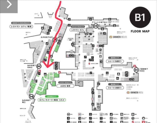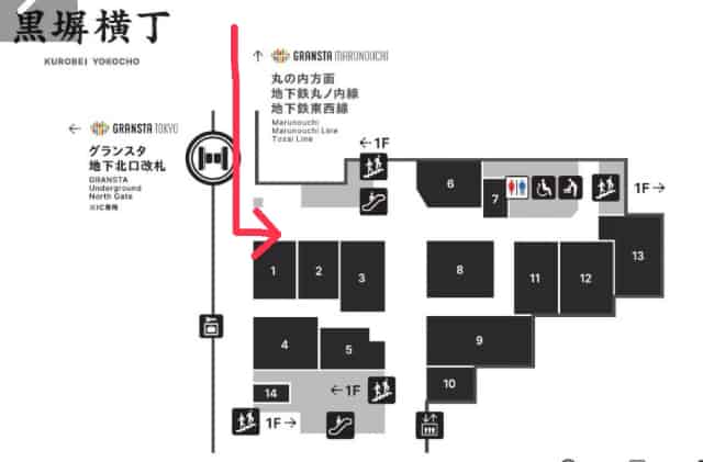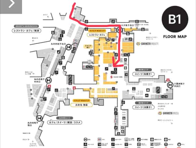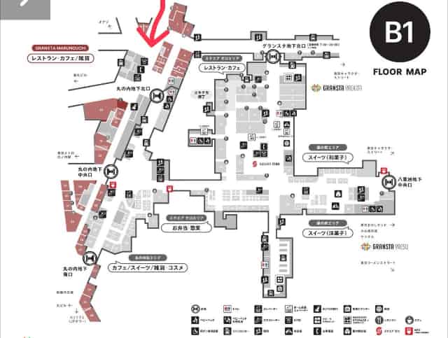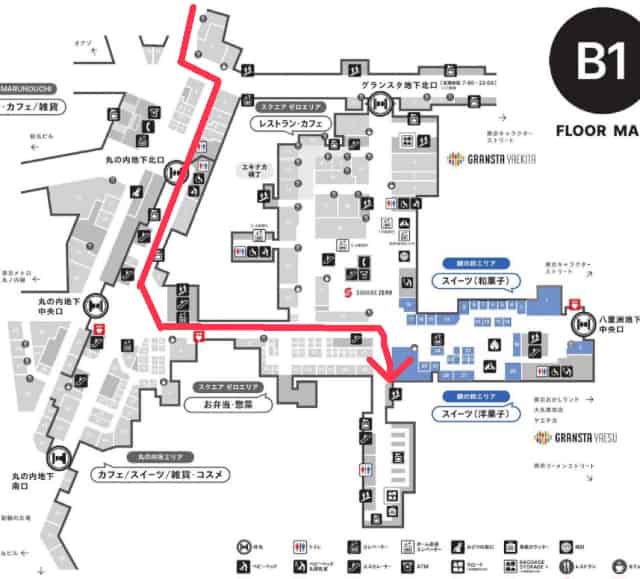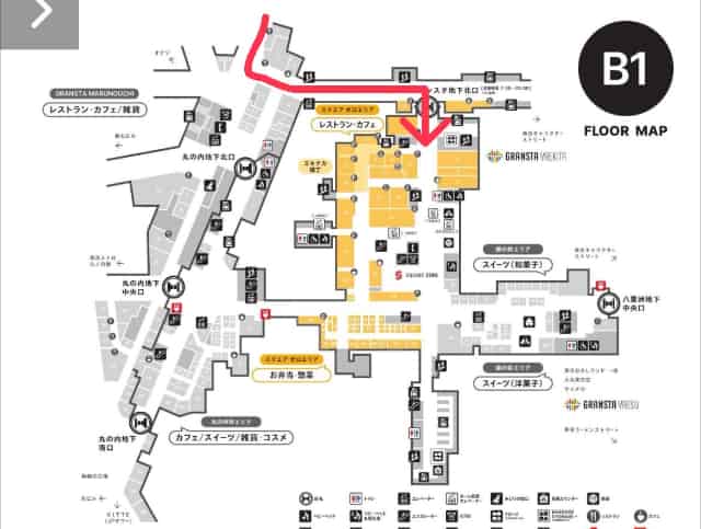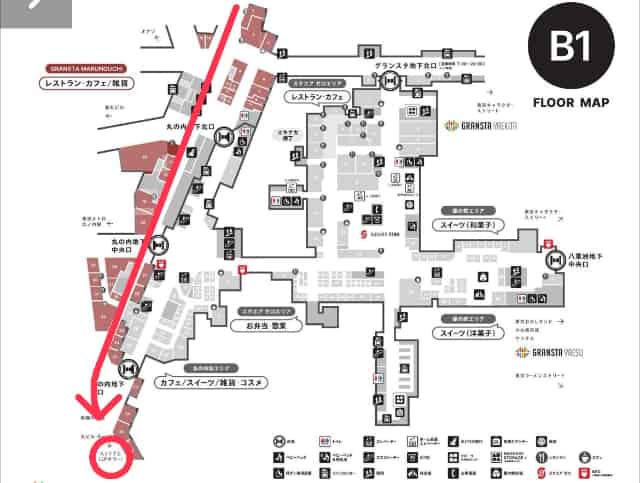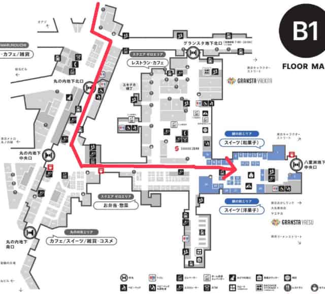 グランスタ八重洲に到着しました。行きすぎるとヤエチカになってしまうので注意してください。