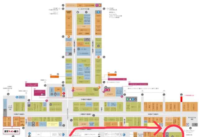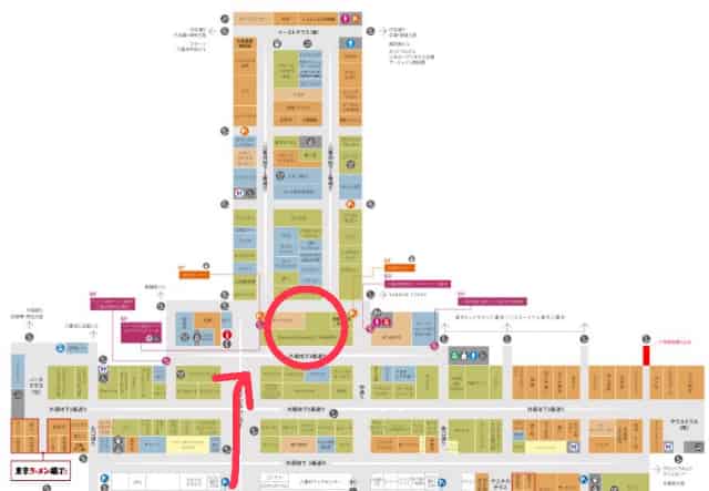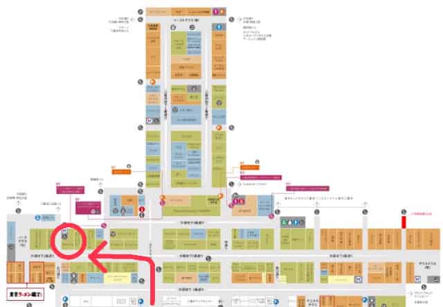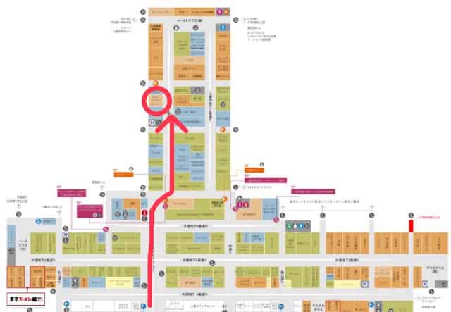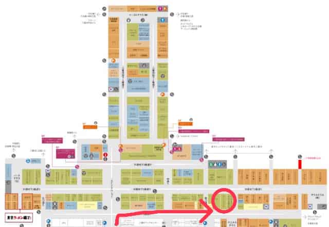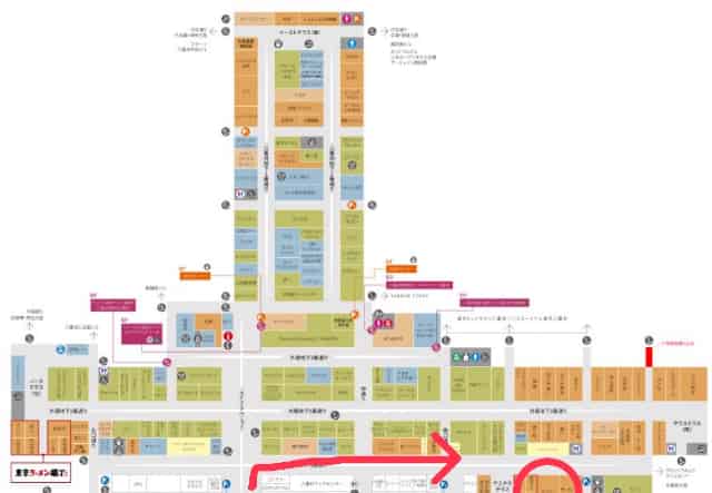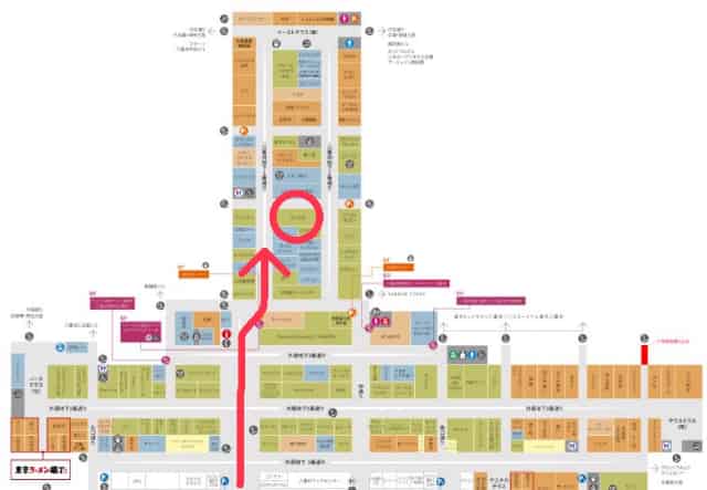 八重洲地下中央口から来た場合の各店舗の位置です。